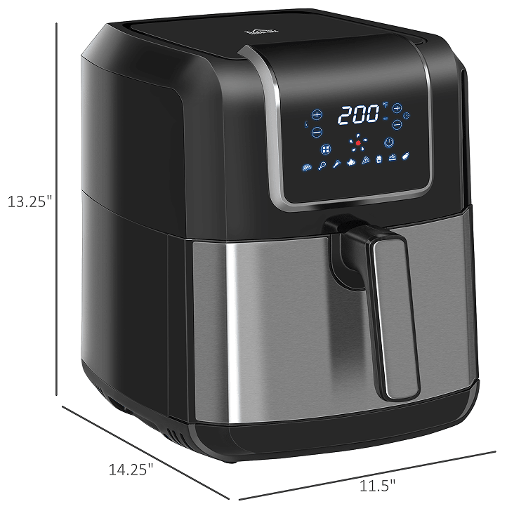 Air Fryer Information: Overall Size: 14.25' L x 11.5' W x 13.5' H. Assembly required.