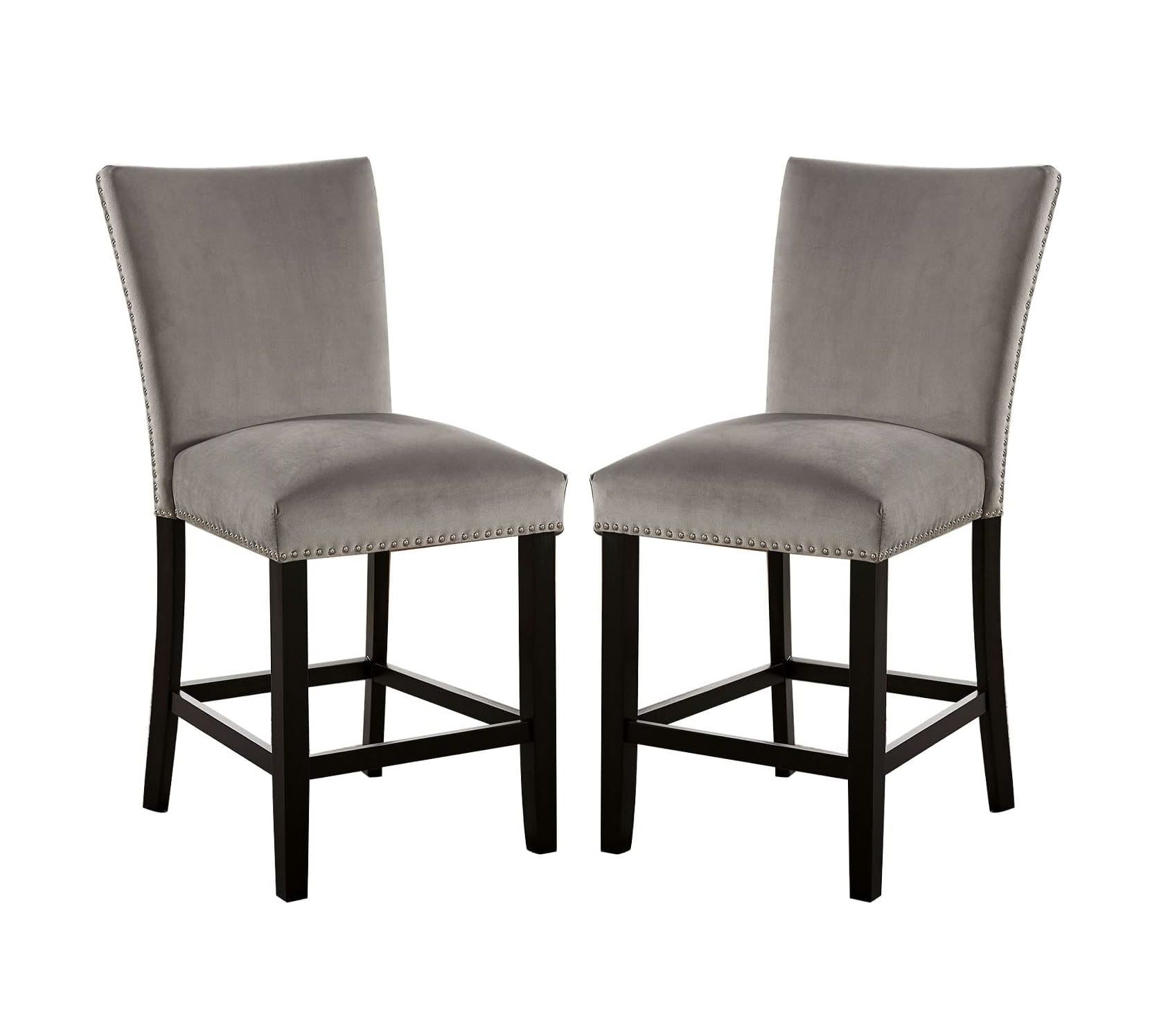 Home > Attractive Set of 2pc Counter Height Chairs Dining Room Furniture Gray Flannelette Seat Nailhead Trim Kitchen Breakfast