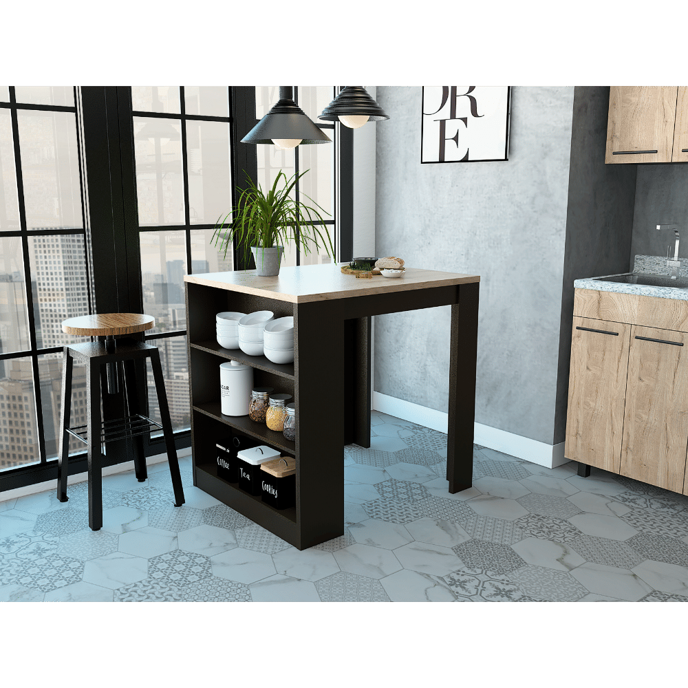 Elkins 3-Drawer Kitchen Island Black Wengue and Pine