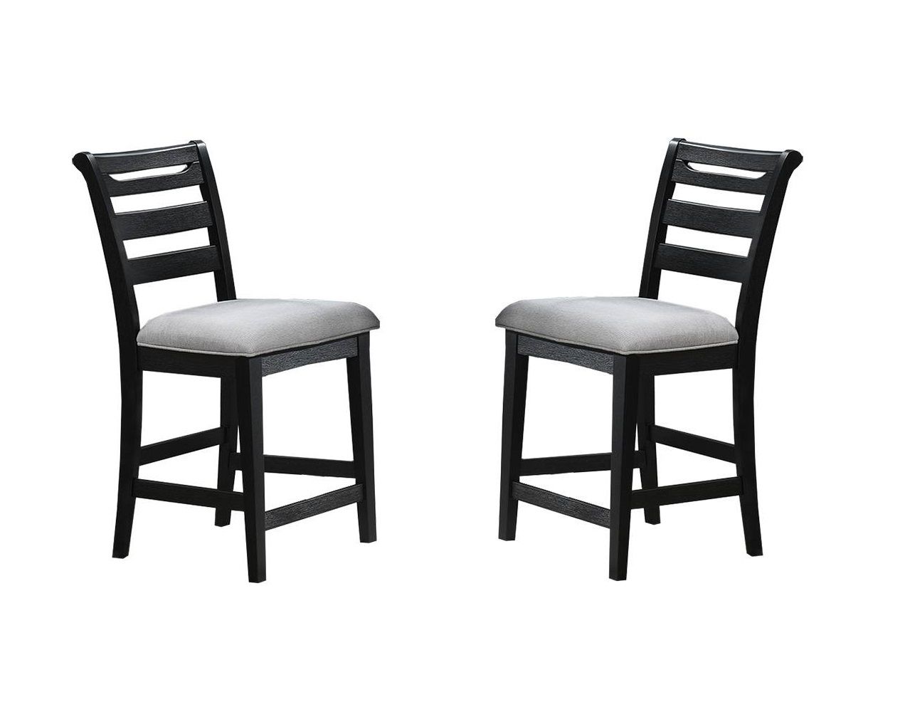 Modern 2pc Counter Height Dining Chairs Black Color Ladder Back Frame Upholstered Cushion Seat Solid wood Kitchen Dining Room