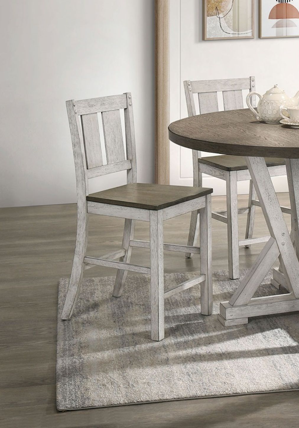 Antique White Finish Solid wood Farmhouse Design Kitchen Set of 2pc Counter Height Dining Chairs Slat Back Chairs Dining Room