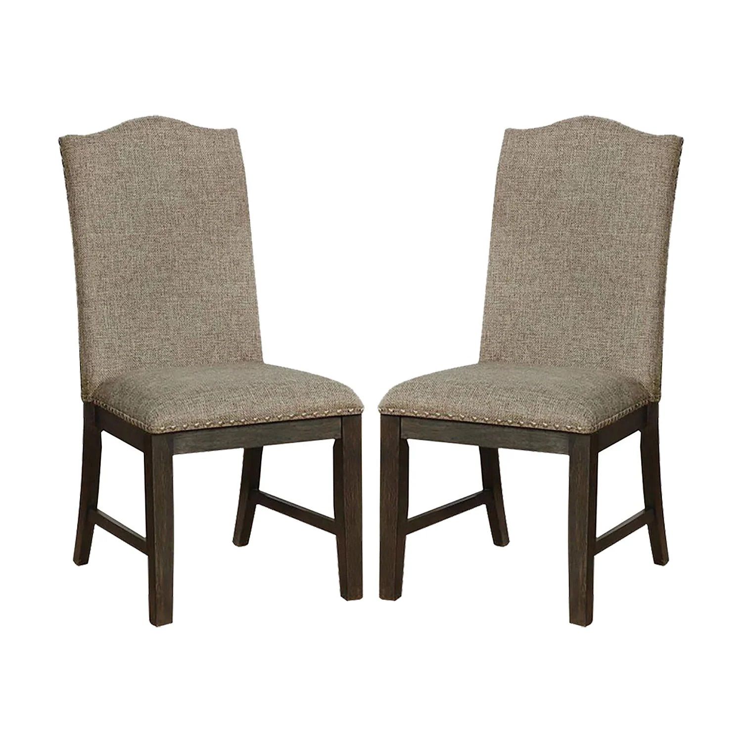 Transitional Set of 2 Side Chairs Espresso Warm Gray Nail heads Solid wood Chair Fabric Upholstered Padded Seat Kitchen Rustic Dining Room Furniture