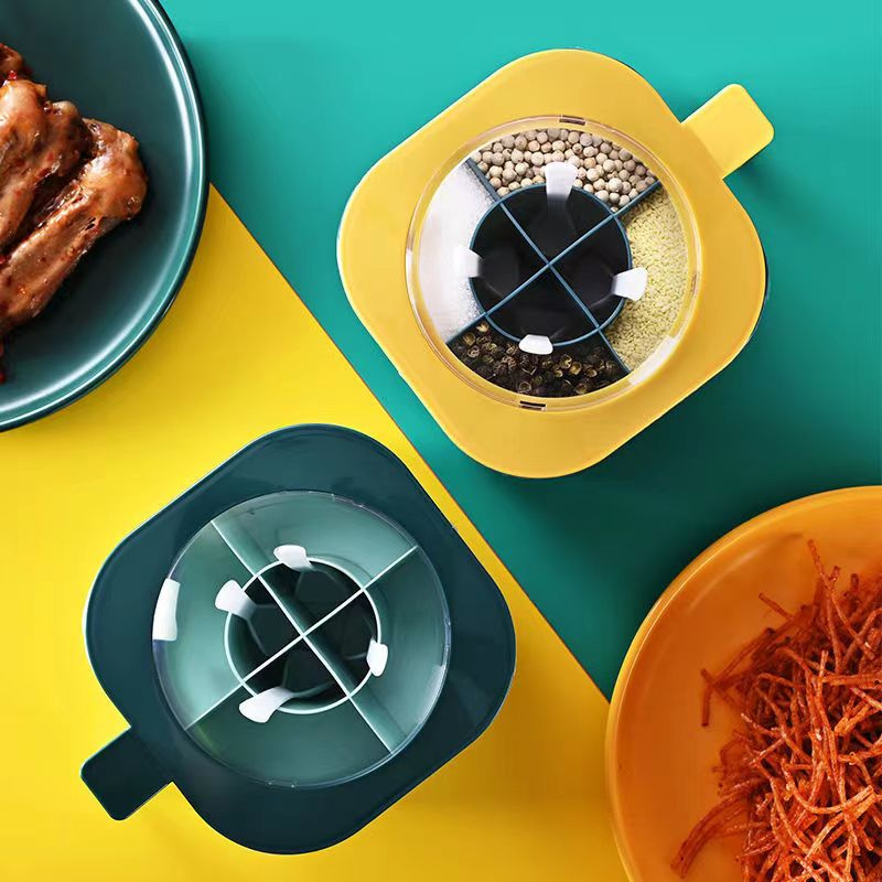 Home > 1pc 4 Grids Seasoning Box; Square Spice Pot; Kitchen Seasoning Holder With Lid