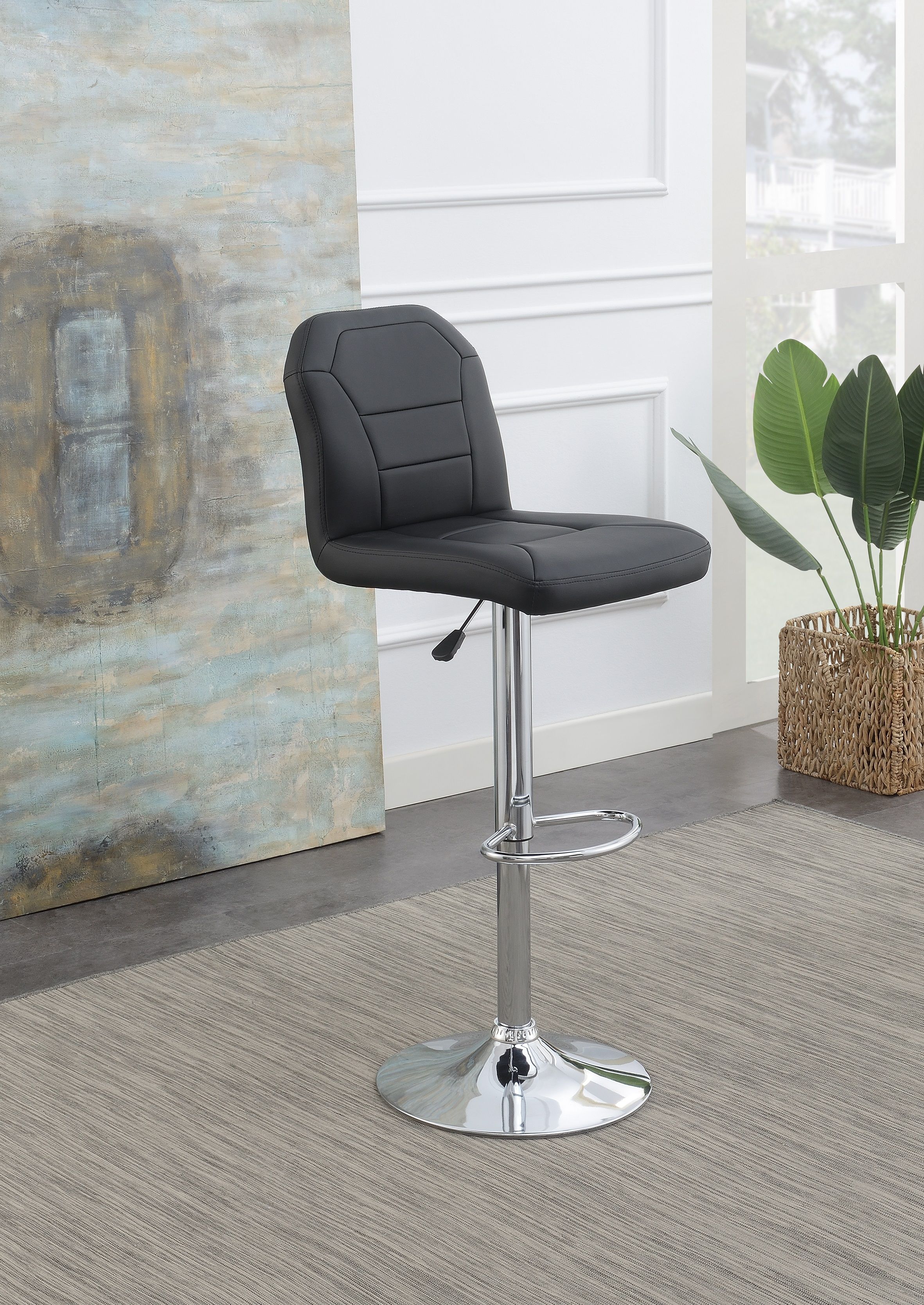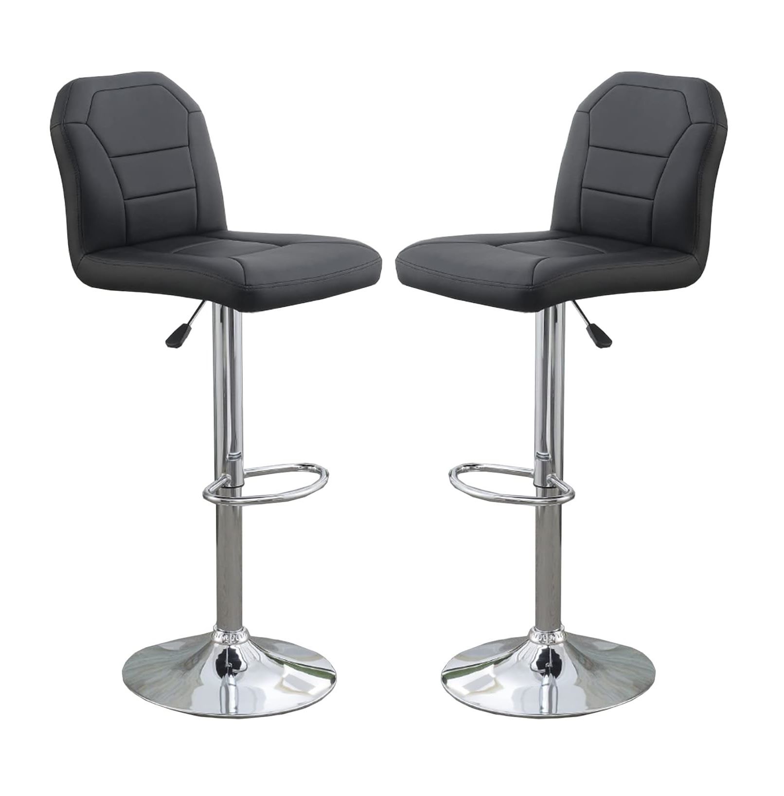 Home > Adjustable Bar stool Chair Black Faux Leather Clean Lines Seat Chrome Base Modern Set of 2 Chairs / Bar Stool Dining Kitchen