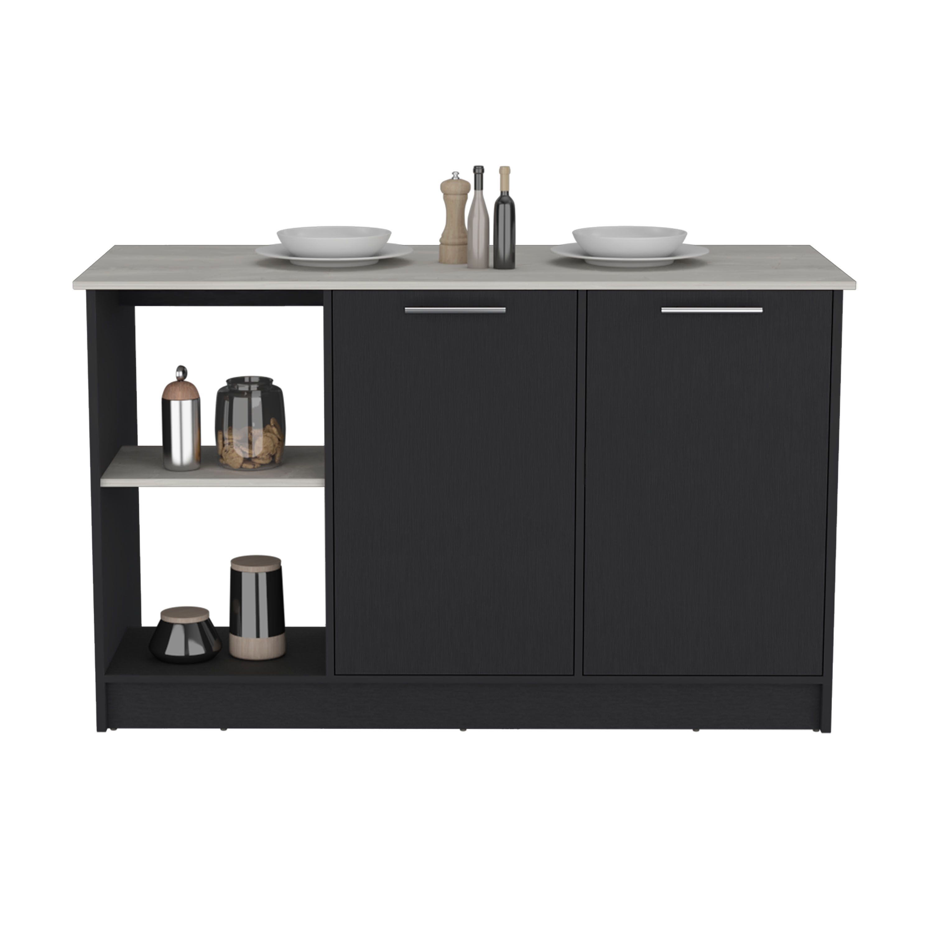 The two open shelves are perfect for placing frequently used items, such as cookbooks, utensils, and spices.